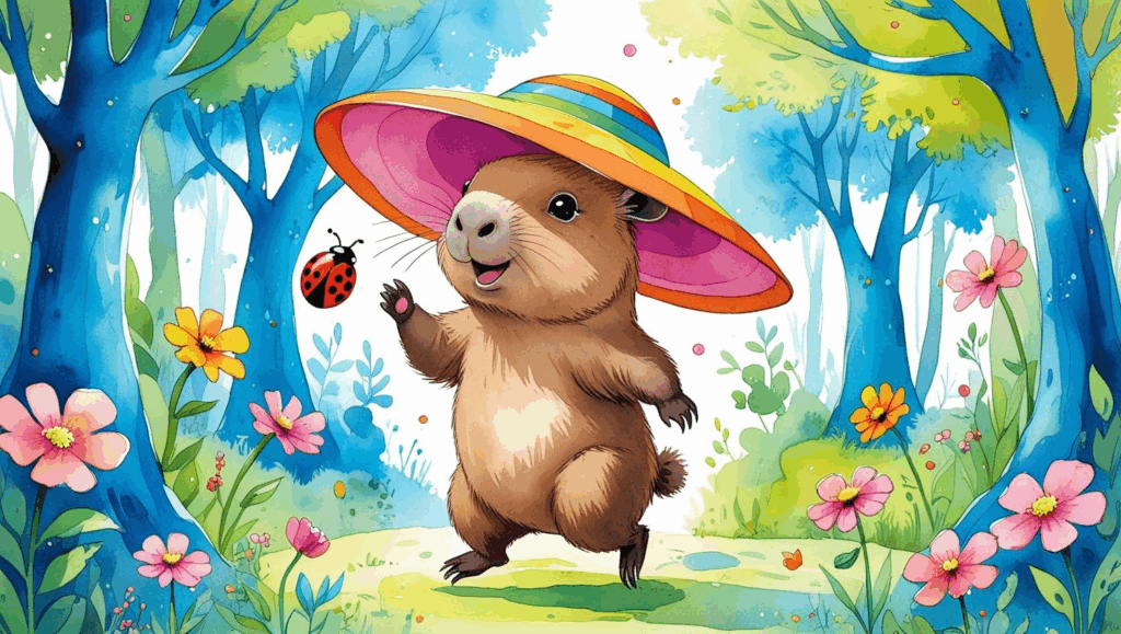 Na Floresta Colorida, Xaxá, a capivara, amava brincar com todos os bichos: grandes, pequenos, velozes ou vagarosos.